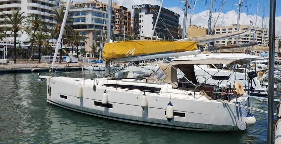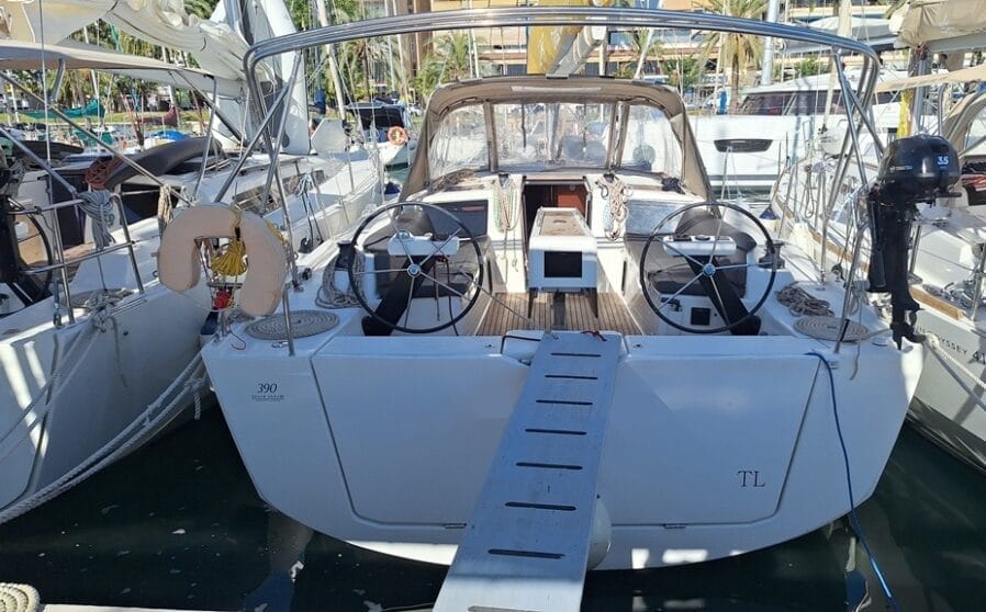 The Dufour 390 Grand Large is a modern sailing yacht offering comfort, safety and elegance. Built by the renowned French shipyard Dufour and designed by Umberto Felci, this ocean-going cruiser has a minimalist design with bright interiors, a spacious cockpit, twin steering wheels, a transom that converts into a swim platform, three cabins and three bathrooms. The Dufour 390 Grand Large is in very good overall condition, well equipped, moored in Palma de Mallorca and available for viewing.