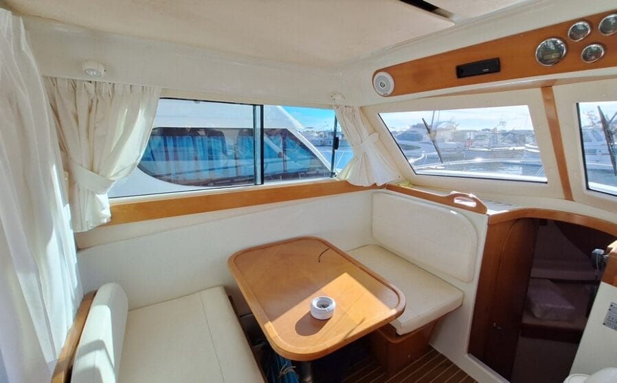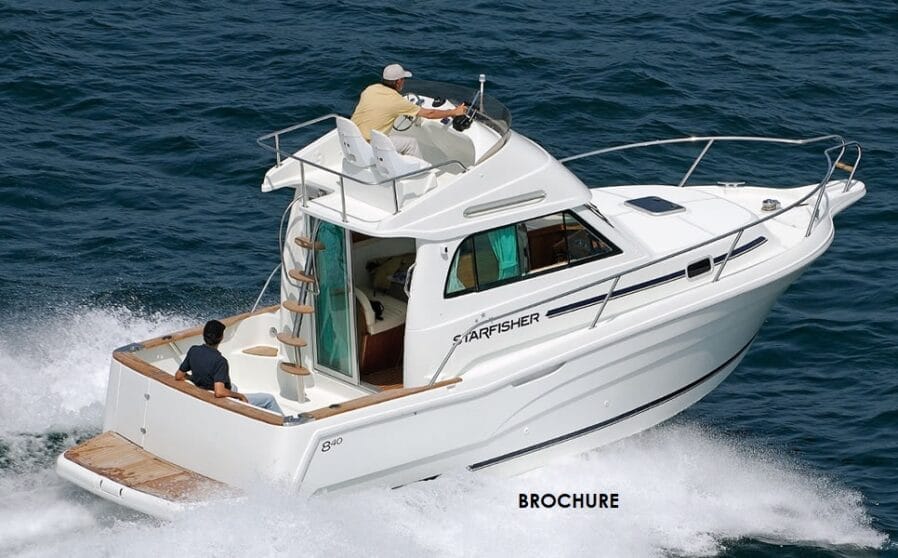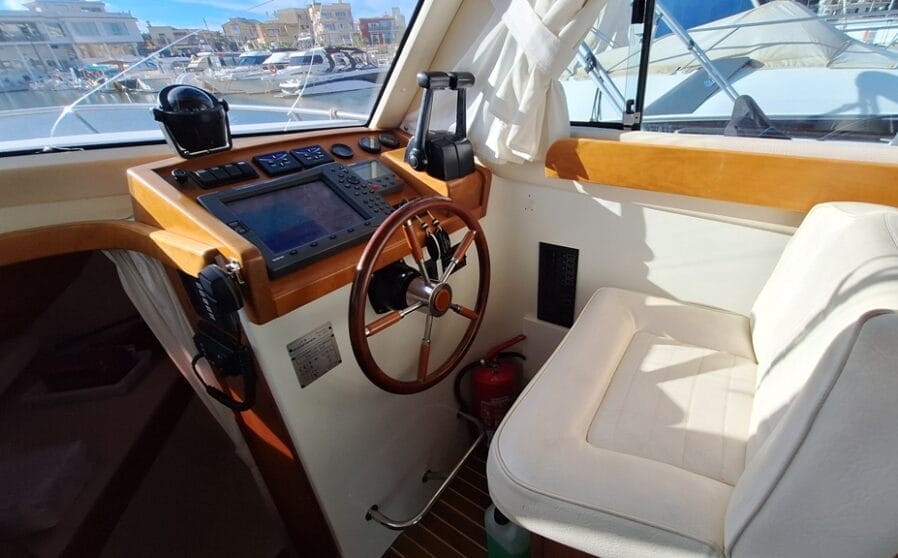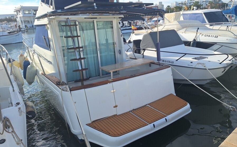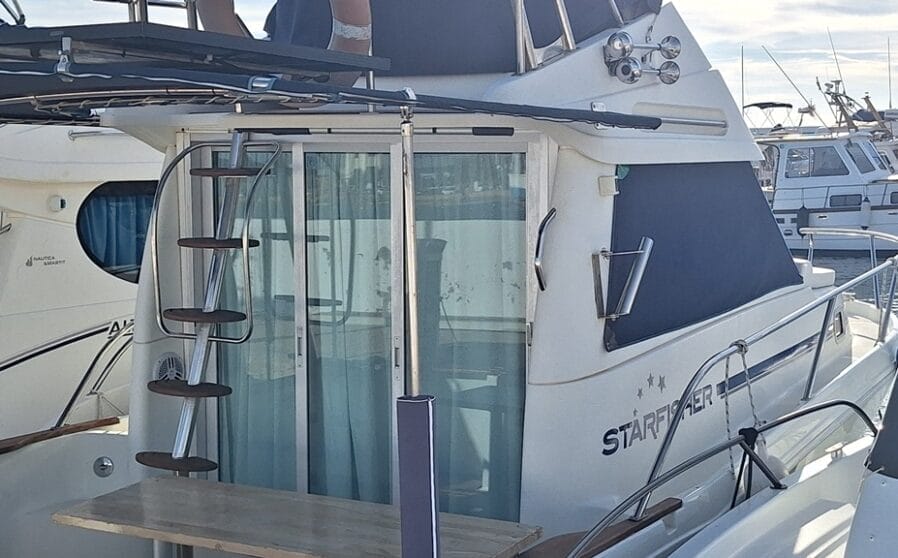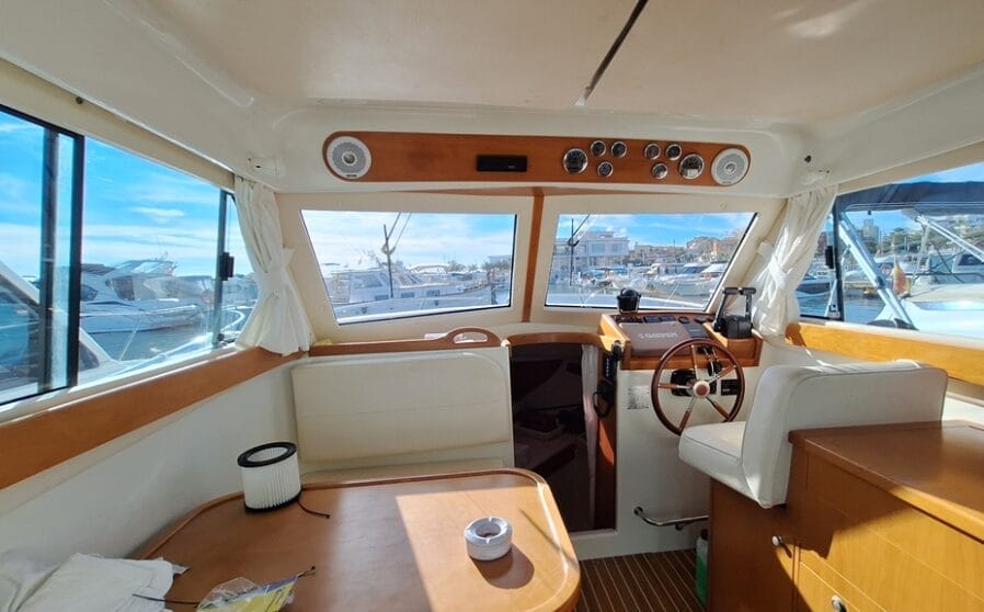 The STARFISHER 840 Fly is a real fisherman’s cruiser, robust, functional and safe. The bathing platform, the walk around bridge, the cockpit, the deck saloon with panoramic view, the forward cabin and separate toilet, the Fly Bridge, two diesel engines and a shaft drive are some of the features that will perhaps catch your attention. The STARFISHER 840 is in good general condition, moored in Palma de Mallorca and available for viewing.