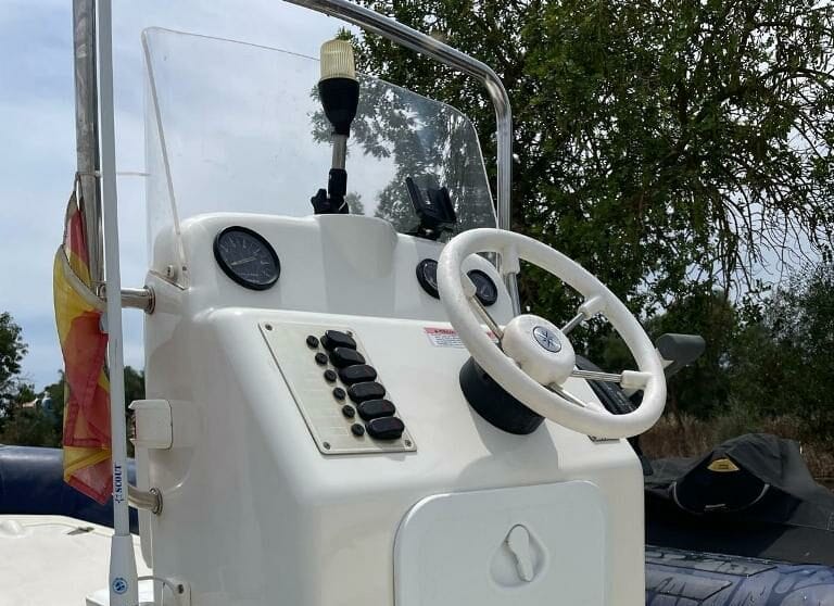 Hypalon floats with a diameter of 50 cm, centre console, double seat, Bimini top, Deep-V hull, are some of the features that will catch your attention. The Zodiac Pro 550 is moored in Mallorca and available for viewing.