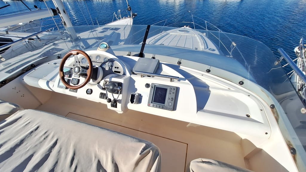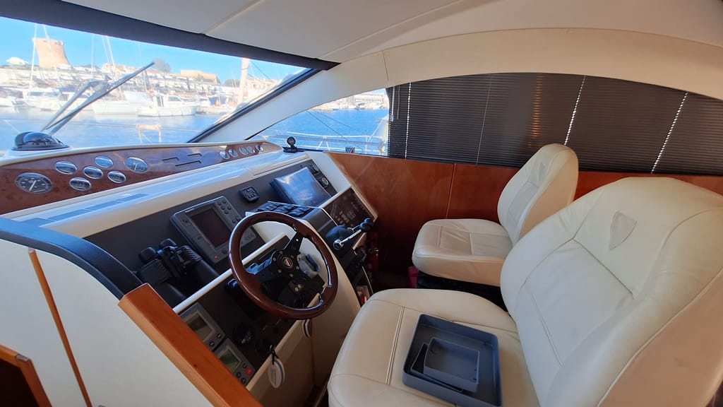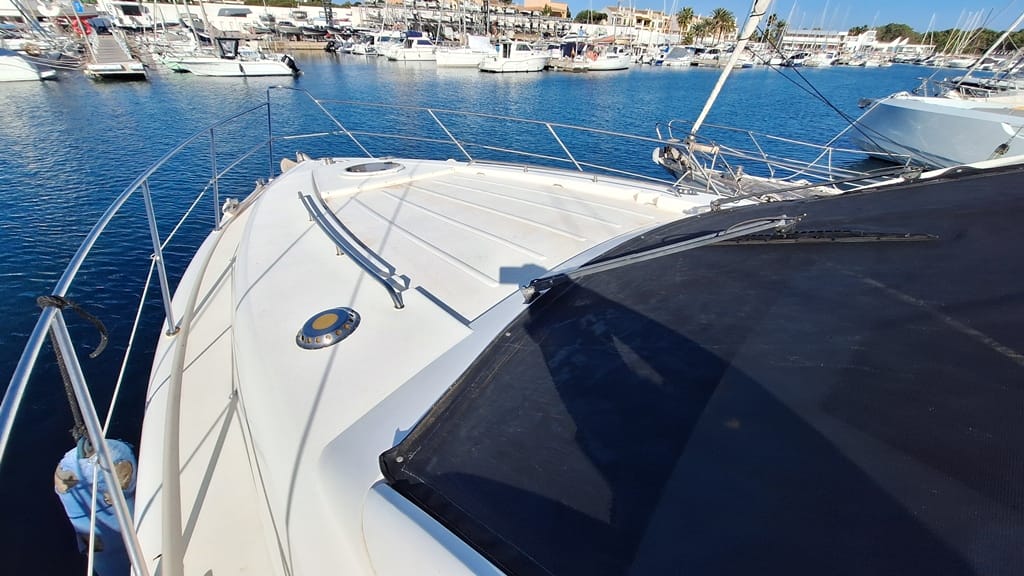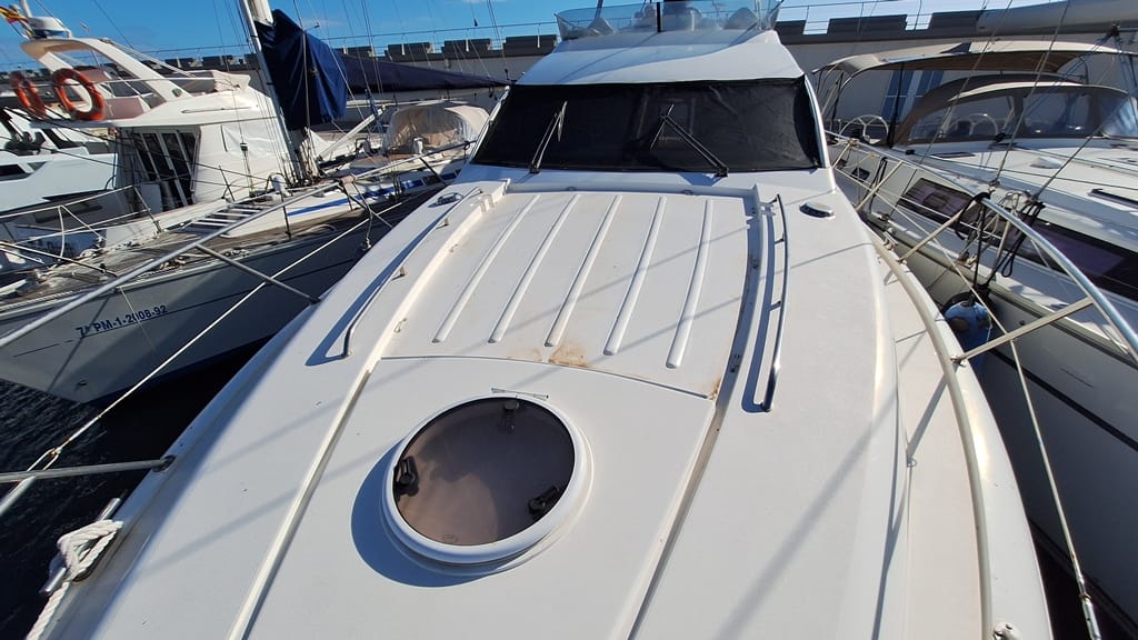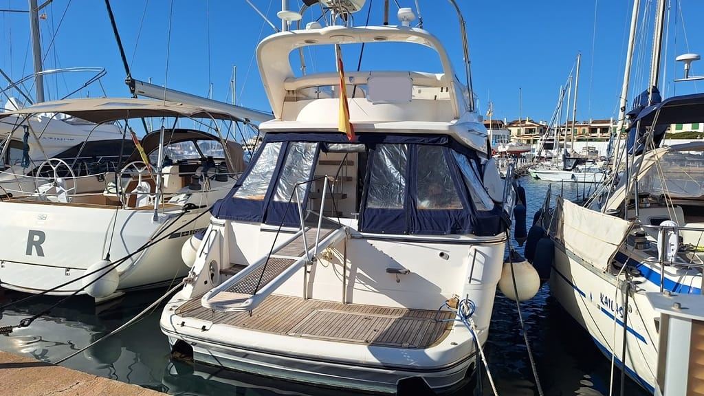 El Fairline Phantom 46 está en muy buen estado general, mantenido profesionalmente, amarrado en Mallorca y disponible para su visita.