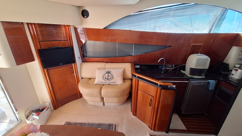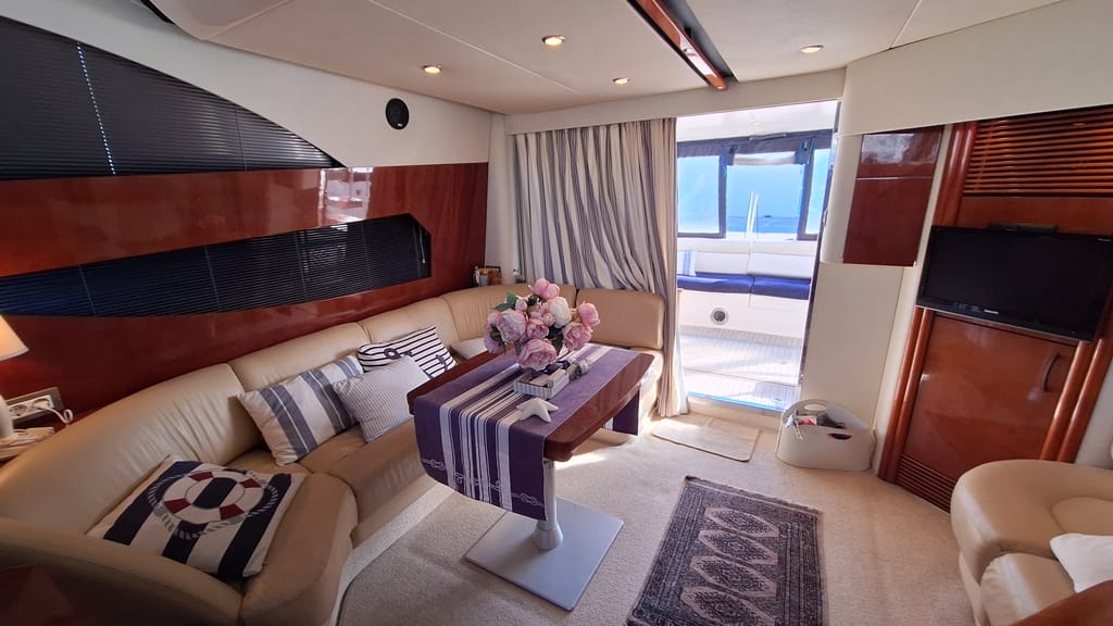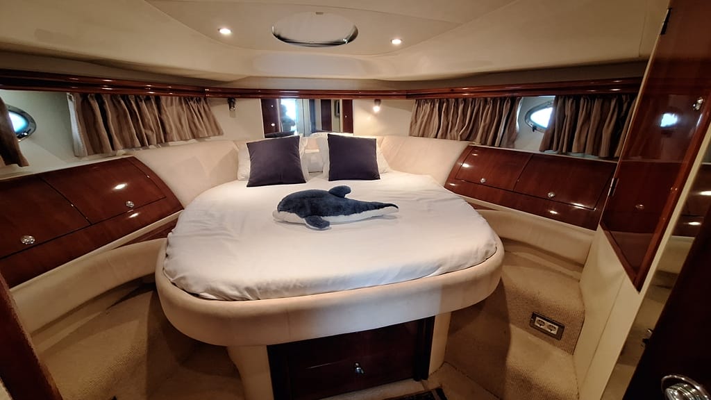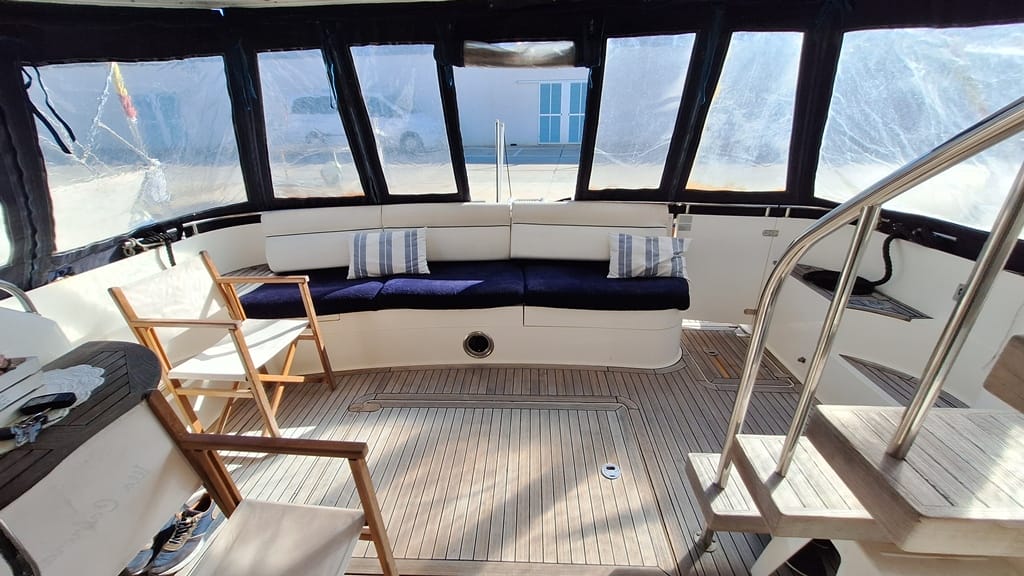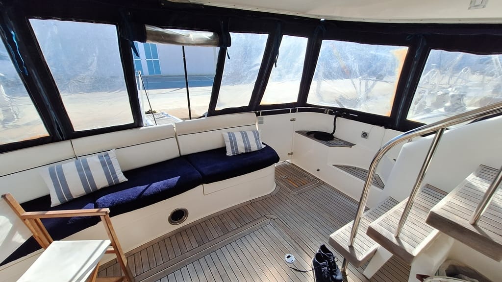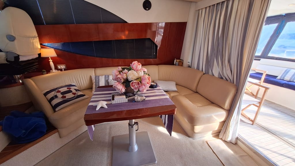 El Fairline Phantom 46 está en muy buen estado general, mantenido profesionalmente, amarrado en Mallorca y disponible para su visita.