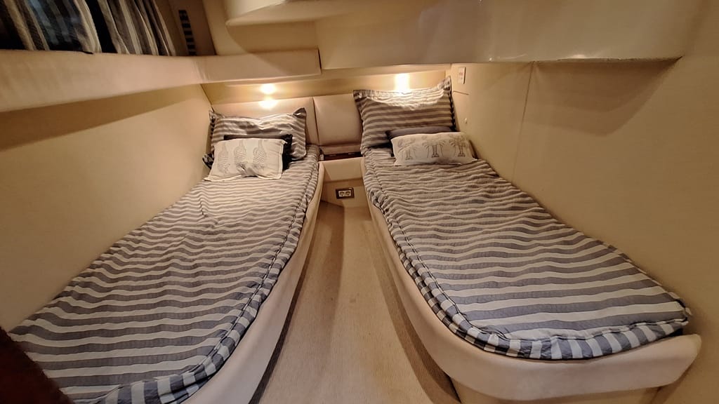 El Fairline Phantom 46 es un yate a motor con Flybridge, fabricado en el Reino Unido por uno de los más famosos astilleros europeos. Diseño elegante, construcción de alta calidad y nivel de acabados excepcional pueden ser sus principales cualidades. Flybridge espacioso con acceso cómodo, interiores luminosos, 3 cabinas, 2 aseos, pasarela hidráulica, 2 motores Diesel potentes con transmisión por eje, aire acondicionado, hélice de proa, neveras eléctricas, cabina de tripulante, electrónica completa, son algunas características que llamarán su atención.