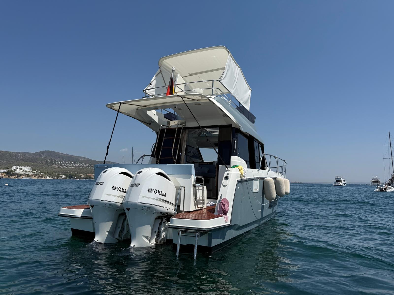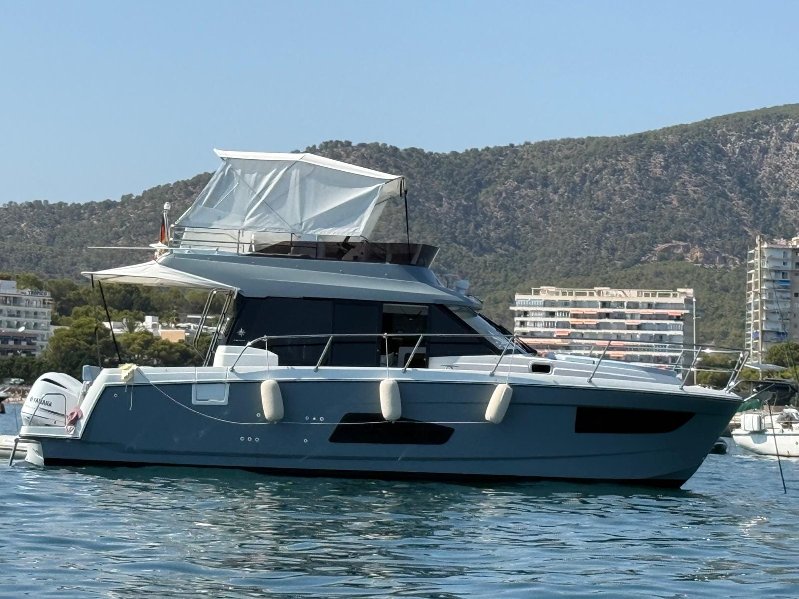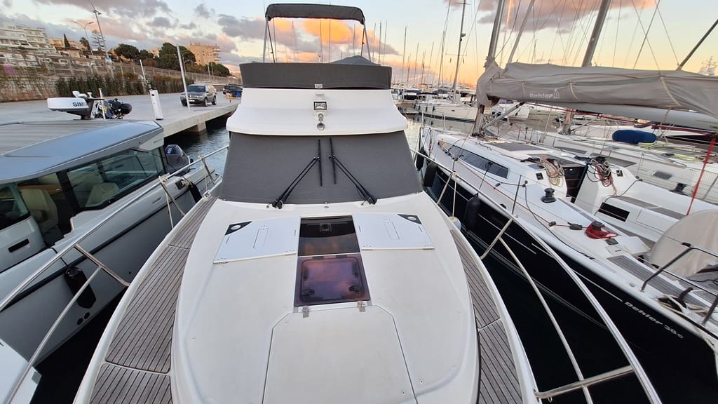 El Jeanneau Merry Fisher 1095 Fly es una burbuja de cristal, la vista panorámica del interior es impresionante, al igual que la fácil circulación en cubierta. El Jeanneau Merry Fisher 1095 Fly está en excelentes condiciones, muy bien equipado, con poco uso, amarrado en Palma de Mallorca y disponible para su visita.