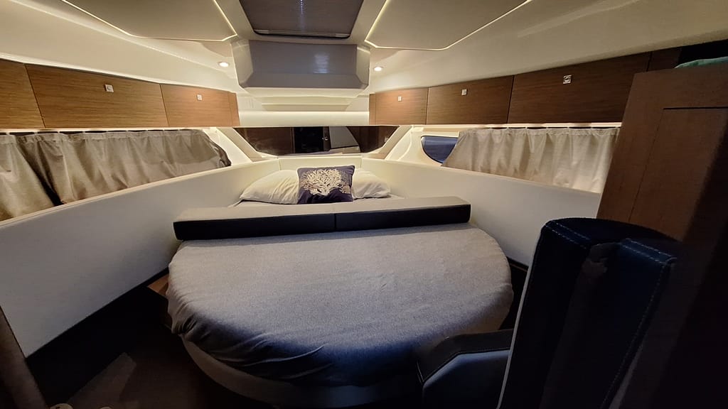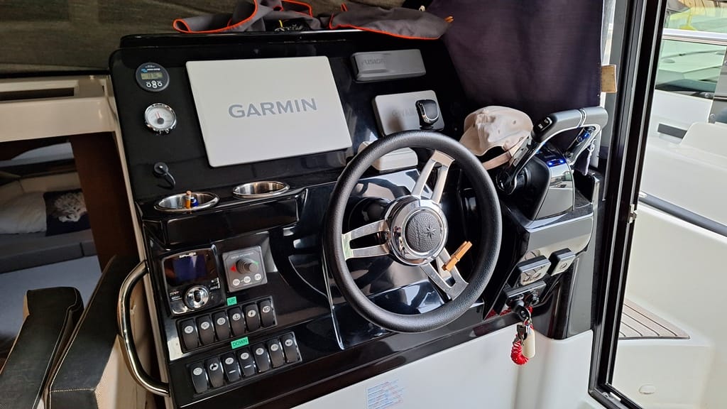 El Jeanneau Merry Fisher 1095 Fly es un barco moderno que ofrece lo último en comodidad, equipamiento y rendimiento. El astillero Jeanneau lo presenta de la siguiente manera. «Las ventajas del Merry Fisher 1095 siguen siendo las mismas: impresionantes volúmenes interiores, tres camarotes con literas dobles, una vista de 360º sobre el mar desde el puente de mando, comodidad, equipamiento y, como en toda la gama, el deseo de ofrecer un salón tranquilizador en un solo nivel, lo que hace que la circulación entre el interior y el exterior sea más fluida y facilita las maniobras y el acceso. Con el flybridge, simplemente ofrece una zona de estar adicional».