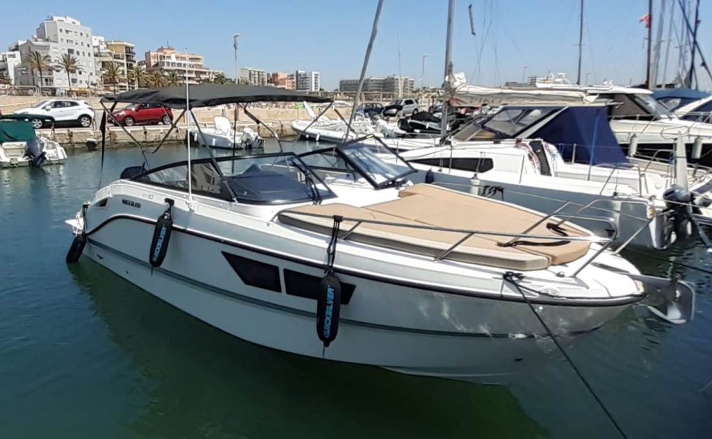 La Quicksilver Activ 805 Cruiser es una lancha americana de última generación, ultramoderna, con estilo, potente y elegante. Una bañera amplia convertible en solárium, hélice de proa, electrónica completa con pantallas multifunción, Nevera eléctrica, toldo Bimini, solarium a proa, interiores con 4 literas y aseo separado, molinete de ancla eléctrico, motor fuera borda potente son algunas de sus cualidades que podrán llamar su atención. El Quicksilver Activ 805 Cruiser está en excelente estado, amarrado en Mallorca, está disponible para su visita.