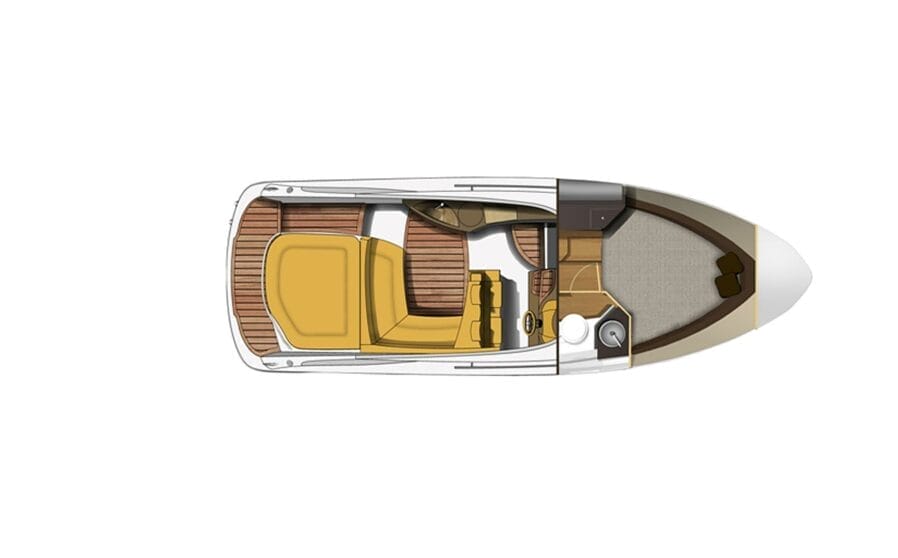 Die Sessa S26 ist ein modernes Motorboot, das hohen Komfort und hervorragende Leistung bietet: gut genutzter Cockpitbereich, 2 Sonnendecks, Sofa mit Tisch, Außenküche (mit Spüle und Kühlschrank) und geräumige Kabine mit separatem WC, leistungsstarker 325-PS-Motor.