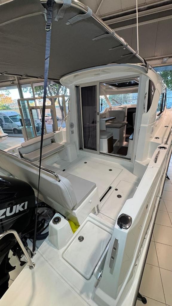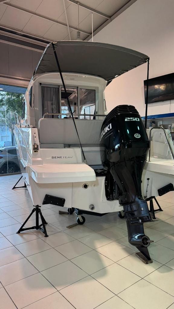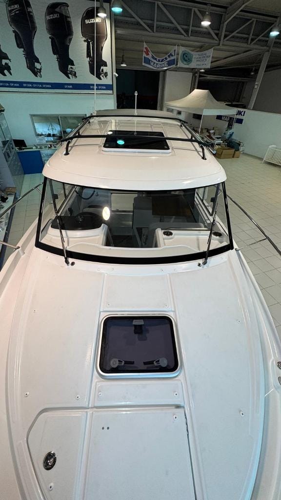 The Bénéteau Antares 8 reflects the latest trend in motorboats, a versatile fishing-cruising vessel that is increasingly comfortable and luxurious. An extendable cockpit, side door in the hull, sun deck at the bow, roof rack for carrying a paddle surfboard or other equipment on the roof, a very bright and well-ventilated bridge cabin (wheelhouse), 3 berths, a fully equipped kitchenette (sink, gas cooker and electric fridge) and a separate head are some of the features that will catch your eye.