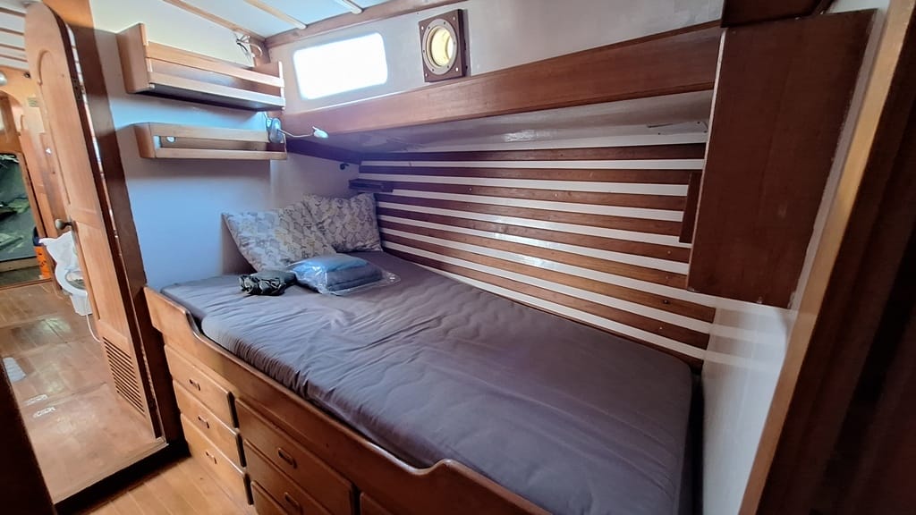 The Formosa Pacific 43 is a classic sailing yacht, a cruiser designed by Ron Holland and built in fibreglass by Formosa Boat Building Co. Ltd. in 1979. This 12.75 m sloop is known for being robust and designed for ocean voyages. The Formosa Pacific 43 is in very good overall condition, largely refurbished in 2022, and is well equipped, even for offshore sailing (solar panels, wind generator, water maker, etc.). The Formosa Pacific 43 is moored in Mallorca and available for viewing.